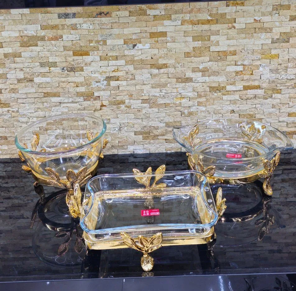 اگر عاشق پذیرایی شیک و منظم هستید، ست سه عددی سوفله خوری طرح برگ میتواند همان المان لوکسی باشد که همیشه دنبالش بودید. طراحی الهام گرفته از برگ های ظریف در کنار آبکاری براق نقره‌ای و طلایی که این محصول را به یک ست پذیرایی خاص تبدیل کرده است. این ست سه عددی؛ کاربردی فوق العاده در سرو غذا های گرم و مجلسی دارد.